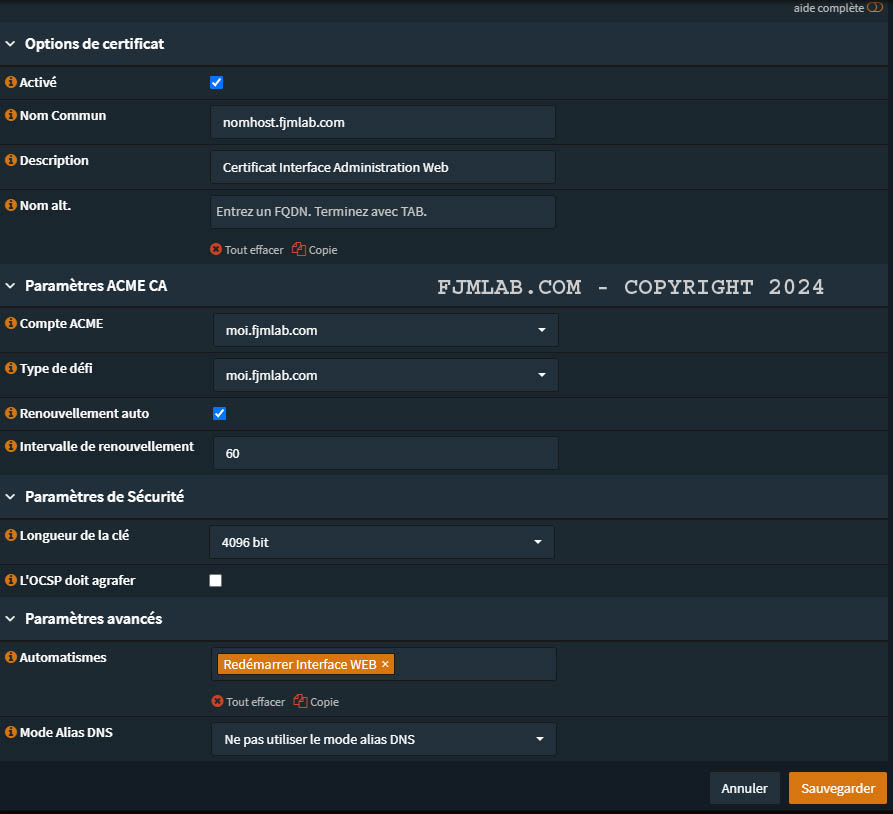 >> Afin d’éviter les échecs de validation du certificat, vous allez devoir définir un nom d’hôte pour votre routeur et également vous assurez d’avoir bien configurer votre domaine.