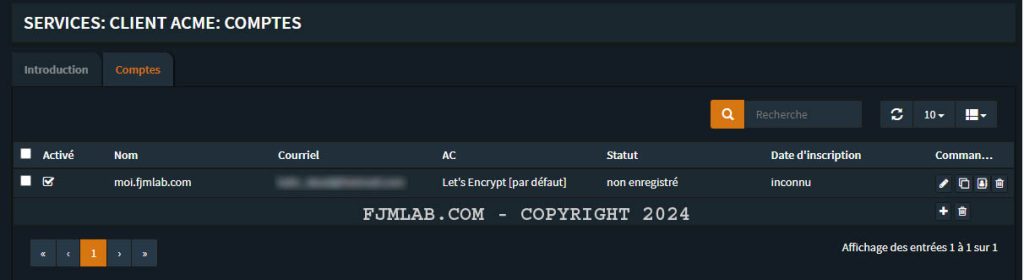 Aller sur Service > Client ACME > Certificats.