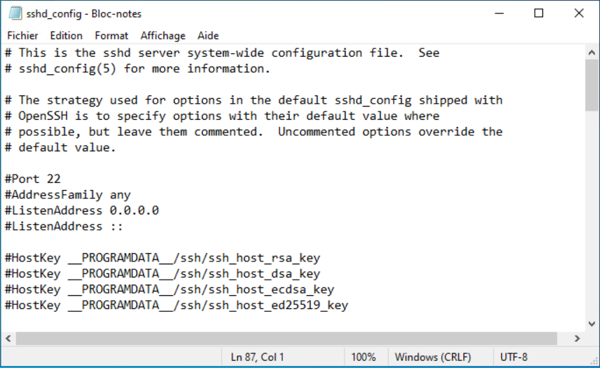 Plus d’information dans la documentation de Microsoft : Authentification basée sur des clés dans OpenSSH pour Windows.